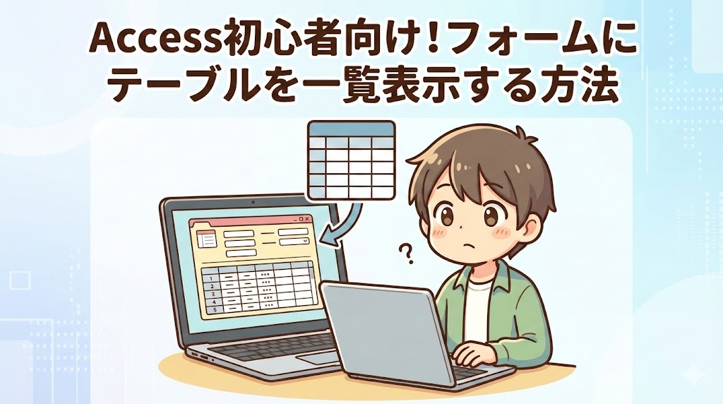 この記事では、Access初心者向けに、テーブルのデータをフォームで一覧表示する方法を、画面操作中心でわかりやすく解説します。